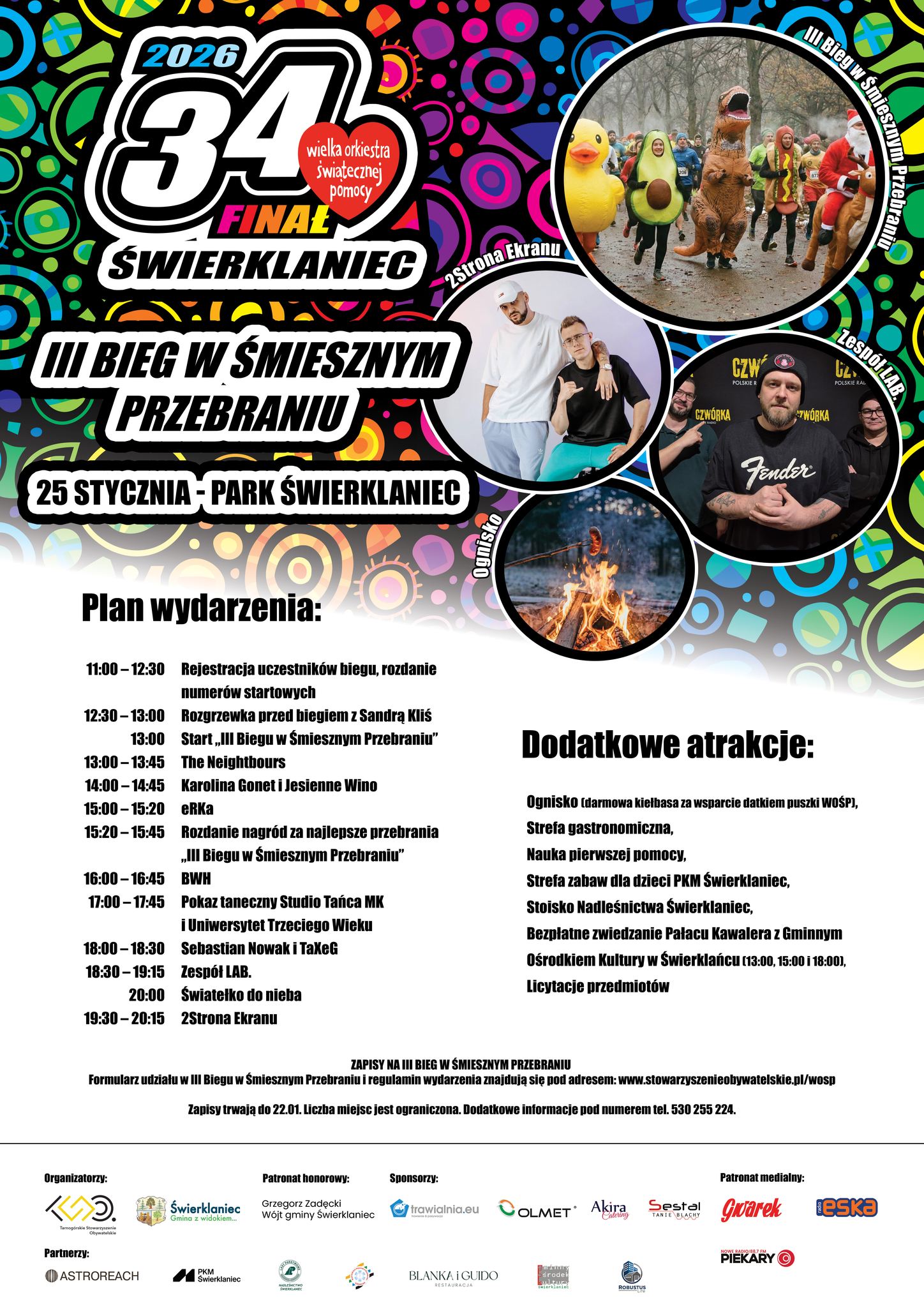 Całkowity dochód z opłaty startowej zasili konto 34. Finału WOŚP. Przebranie nie jest obowiązkowe, ale mile widziane. Warto zadbać o strój ciepły, wygodny i bezpieczny. Udział w wydarzeniu odbywa się na własną odpowiedzialność.
