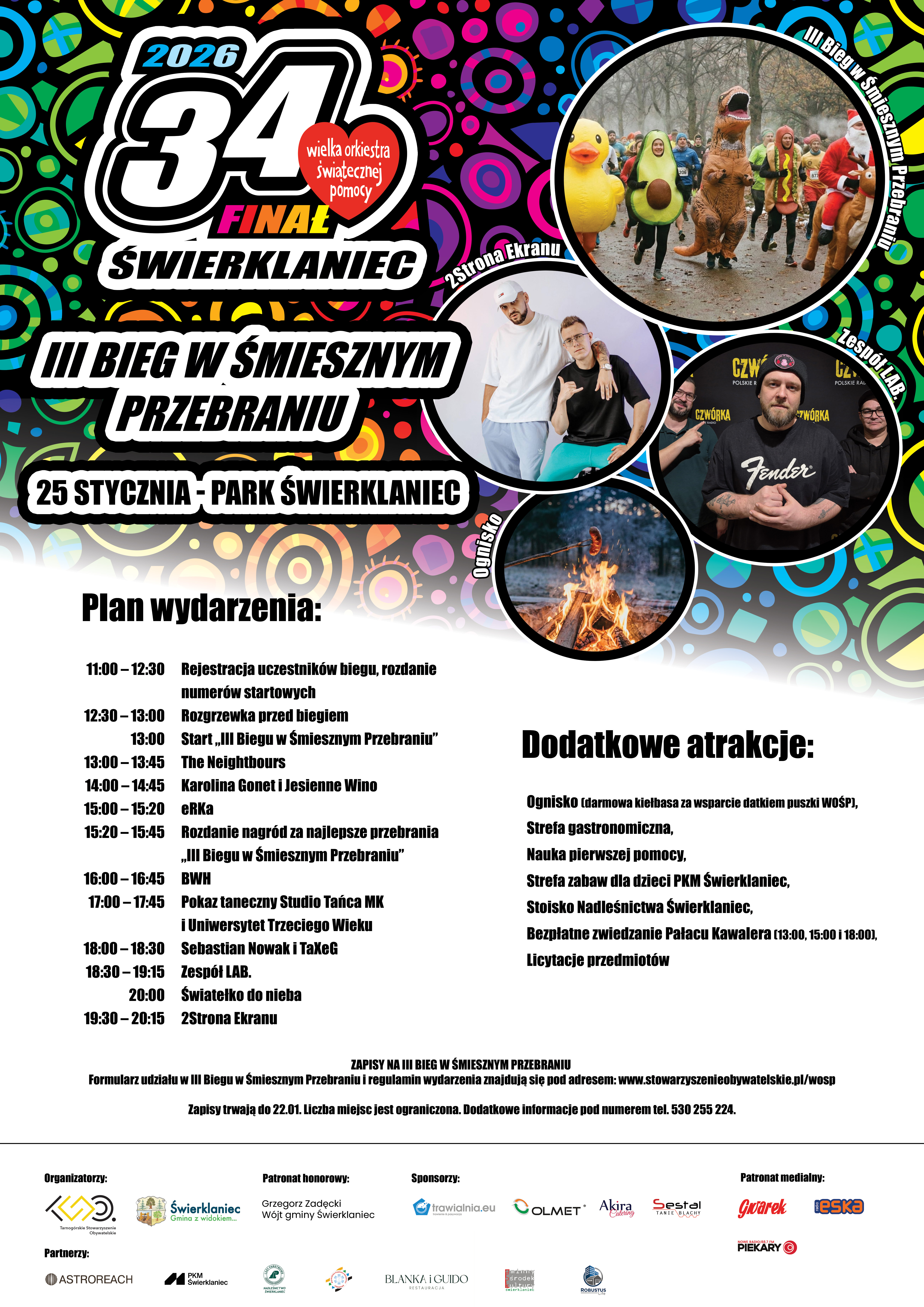 Całkowity dochód z opłaty startowej zasili konto 34. Finału WOŚP. Przebranie nie jest obowiązkowe, ale mile widziane. Warto zadbać o strój ciepły, wygodny i bezpieczny. Udział w wydarzeniu odbywa się na własną odpowiedzialność.
